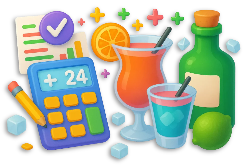 Nebegaiškite laiko kokteilių sąmatų skaičiavimui bei būkite užtikrinti, jog nepraleisite nei vieno ingrediento.